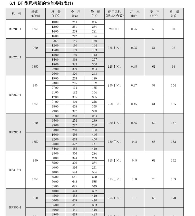 二、BF型风机箱工作条件