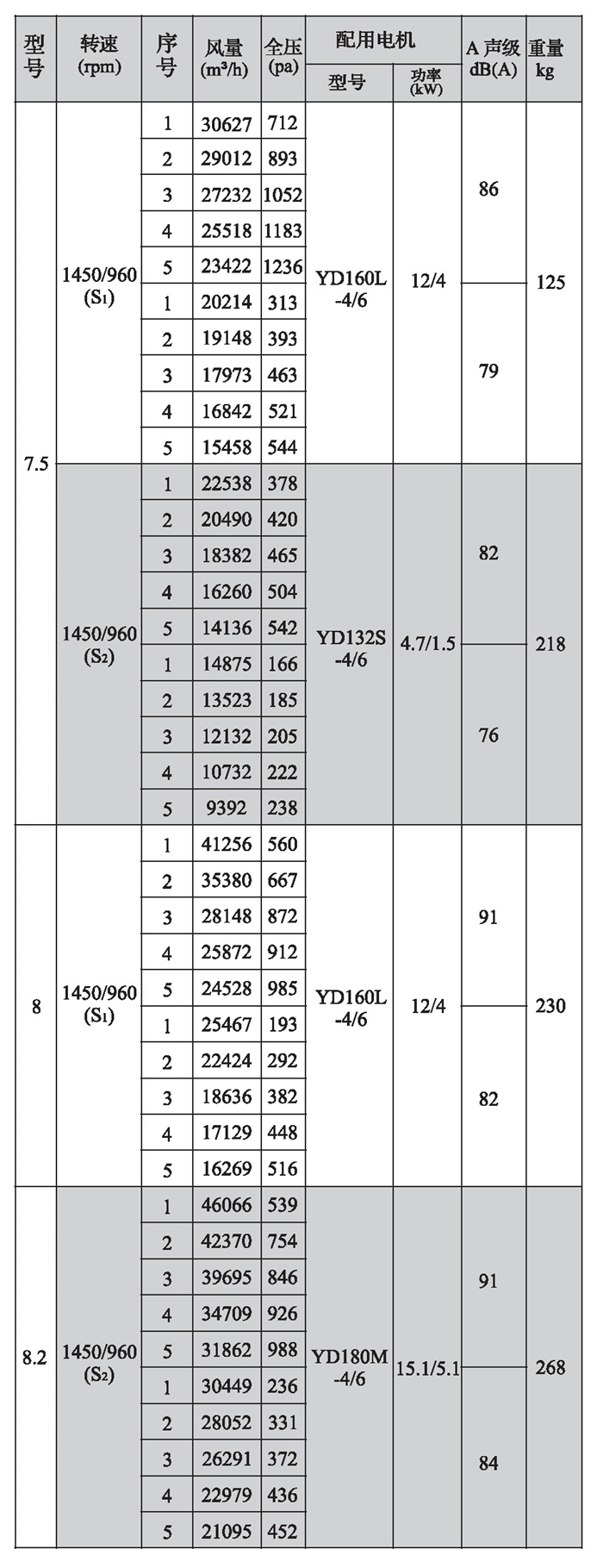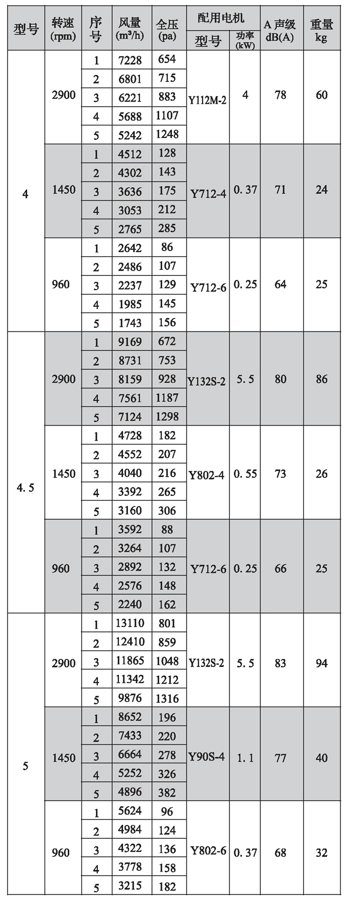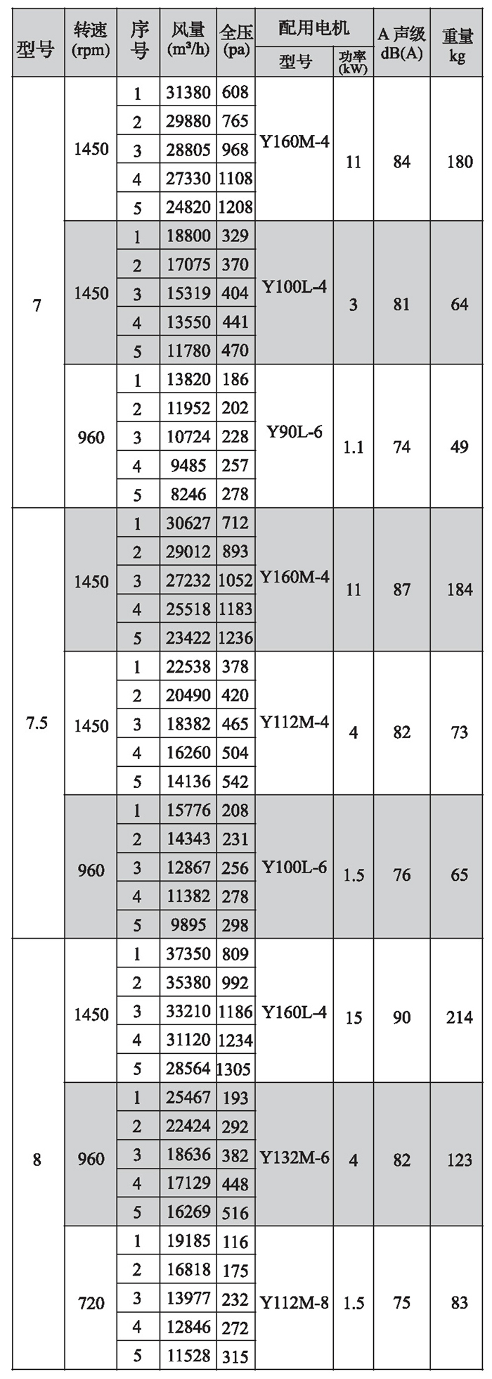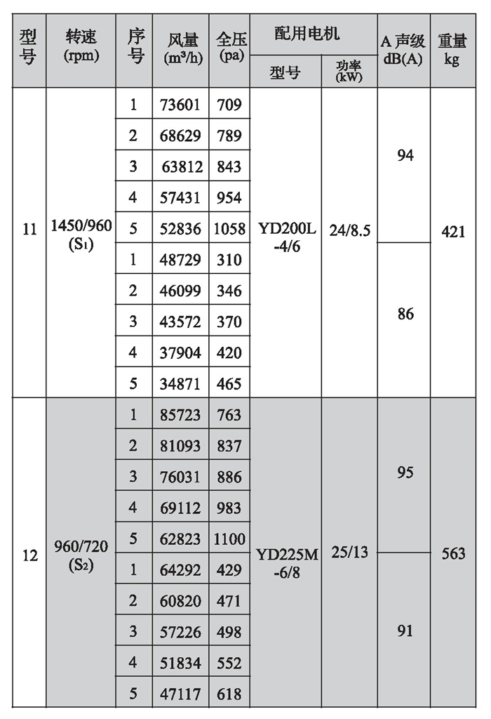 SWF-I系列混流式风机性能参数(4)