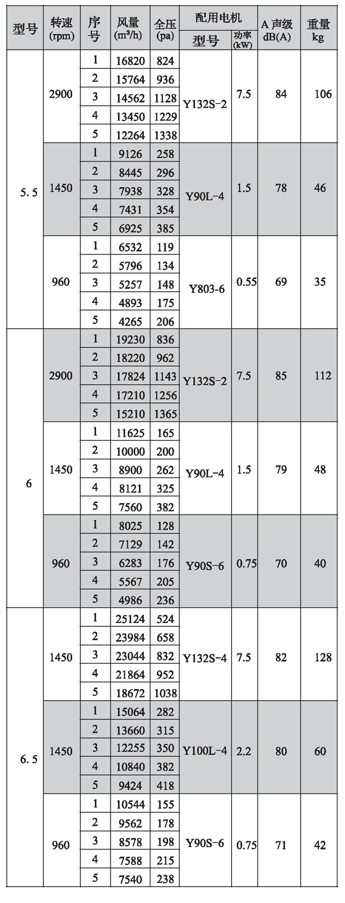 SWF-II系列混流式风机性能参数(1)