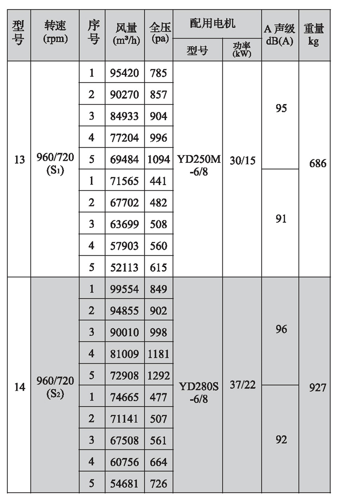 SWF-II系列混流式风机性能参数(2)