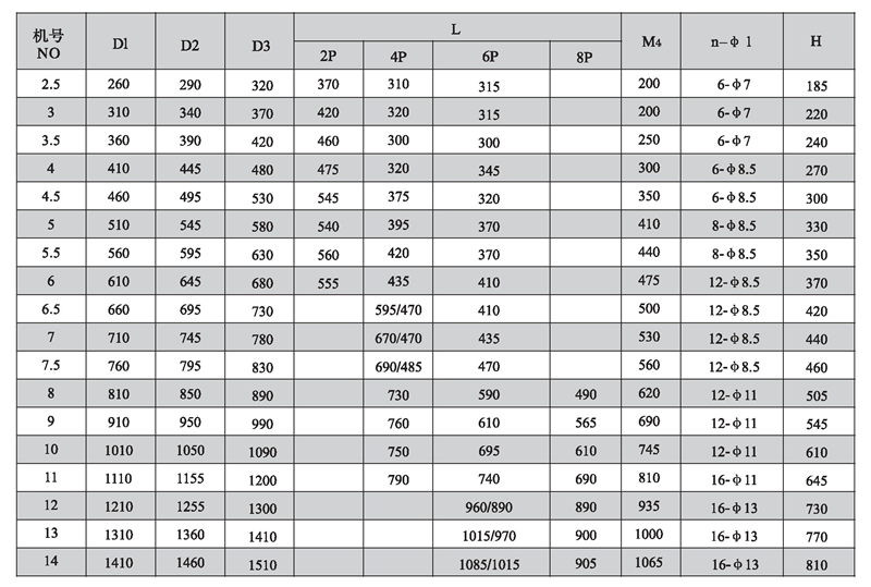 四、SWF-1I系列混流式风机安装尺寸表