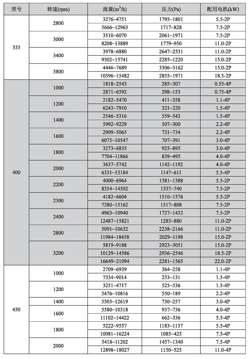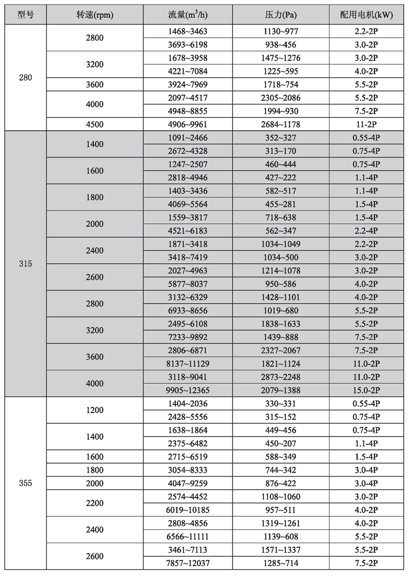 输送介质: HTFC-V 系列风机输送介质为空气及不自然、无腐蚀、不含粘性、附着性、介质所含尘土及颗粒物不大于150mg/m3的其他气体。气体温度一般不超过80℃。