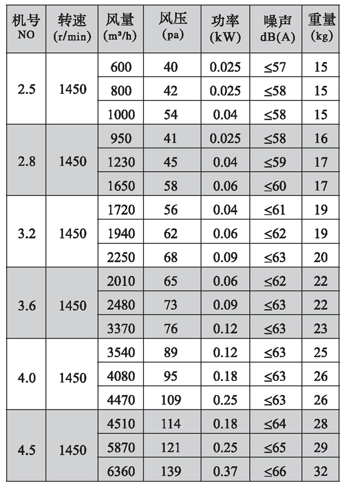 三、DFBZ型风机外形尺寸表(单位: mm)